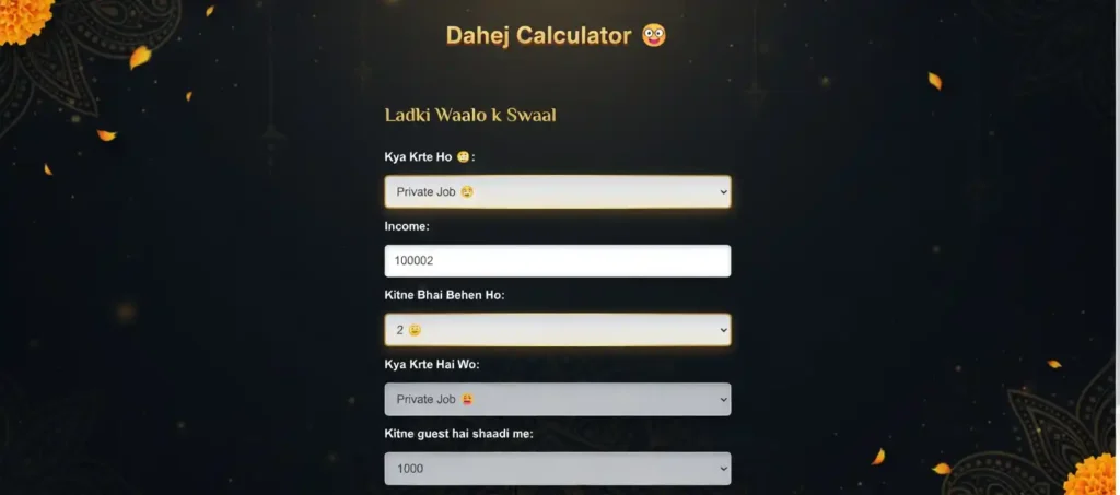 Isi soch ko ek mazaakiya andaz mein pesh karne ke liye hum lekar aaye hain — Dahej Calculator Tool.